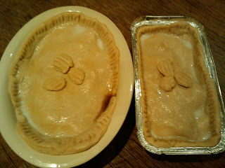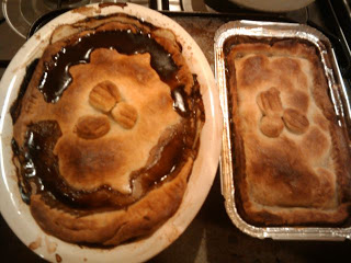 The hot water pastry had stuck to the plate which was annoying. It took a lot of flour to stop it sticking to the table when rolling. The pies were brushed with milk before baking.