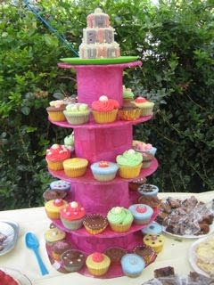 Today is the day when things finally came together. Although I had been up early helping make sure cars were removed from the street, moving my table onto the pavement and collecting a bulk order of sausages from the local butcher, it was not until 11.30 that it was time to put out my cupcakes. We had pleasant weather but there was a strong breeze and I had to tape my cake stand down to the table with masking tape covered with matching pink pencil. Then I had to cut a circle the size of the base into the middle of a paper table cloth and poke the stand through the hole. Fortunately this worked well.