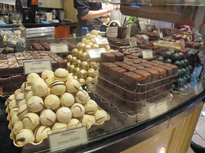I cannot think of an equivalent chain in the UK, this lovely cafe has a very continental feel and would not look out of place in Belgium. They sell hot drinks, their own brand of chocolates and a selection of cakes and cookies. There are lots of beautifully wrapped gift sets to take away too.