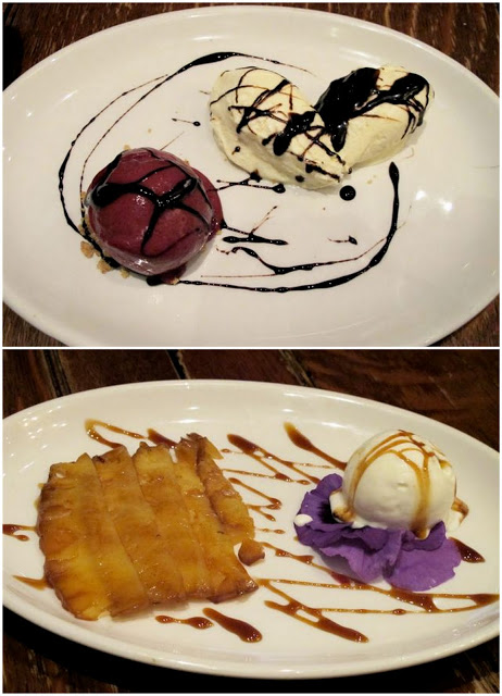 Bottom: Slow roasted pineapple, creme fraiche ice cream, nasturtium flower – £5