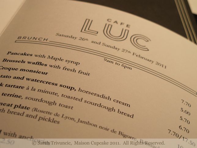 Tel 020 7258 9878I should also point out that Cafe Luc serves an off peak 3 course set menu at £15.90 which sounds much better value although none of the dishes on it at the moment overlap with what we had.