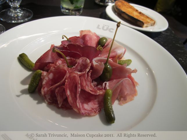 No problems with my starter platter of cured meats with cornichons and caper berries on stalks although the sour dough bread was rock hard.