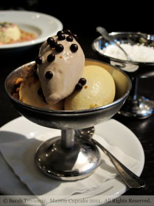 Still hungry, I pinned my hopes on a trio of home made ice creams; vanilla, speculoos and salt caramel.