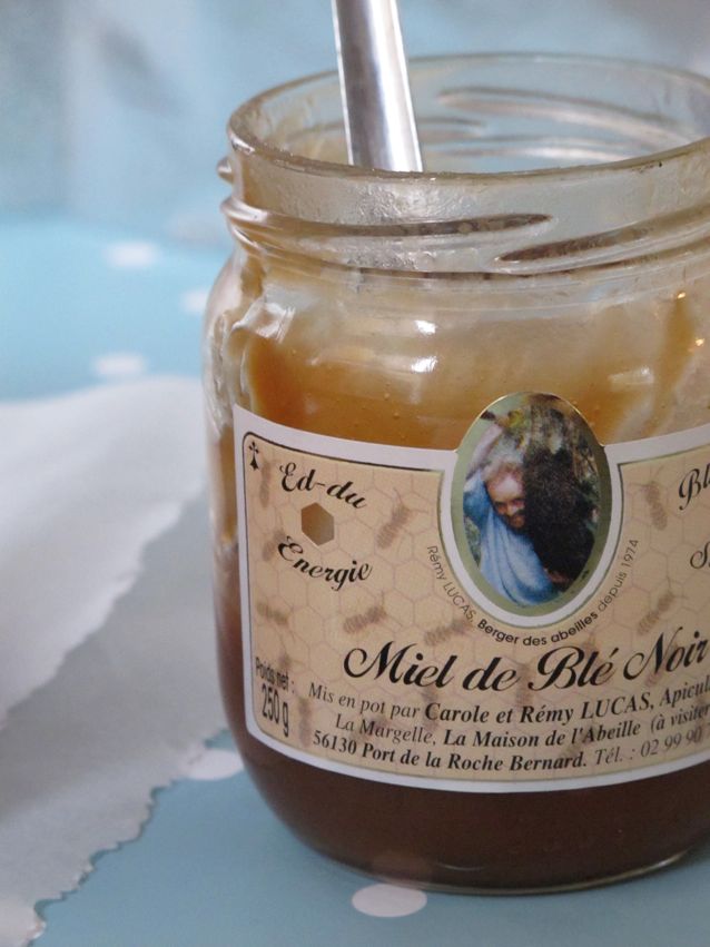 Another reason for choosing this recipe was the suggestion that you accompany it with fresh Greek yogurt – handy since Total had just sent me a month’s supply of it – and maple syrup. Instead of maple syrup I opted for this dark honey you see above which I had bought on holiday in Brittany. Since Eric hails from Brittany I think this most appropriate!