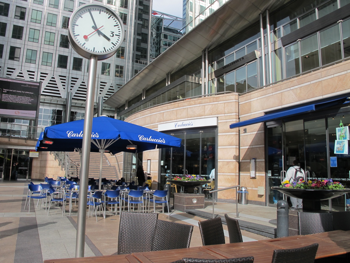 In the past two years we have eaten in three branches of Carluccio’s; Windsor, Brunswick Centre and most recently as pictured today, Canary Wharf. Close to Cabot Place underground shopping mall and Canary Wharf tube station, for summer there is outdoor seating in the shadow of the iconic Canada Tower. I love the blue umbrellas, the strong colour really stands out.