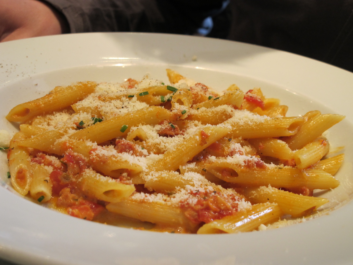 My husband and I ordered penne with a spicy italian sausage sauce and and the ravioli with ricotta and spinach in butter and sage.  This ravioli was particular winner with me, the pasta tasted home made and the dish was not too heavy to eat in the middle of the day.