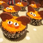 Pear and Ginger muffins with spelt: on a wooden board with orange background