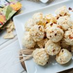 - Press the cheese balls into the bowl of crispy pineapple crumbs until covered.