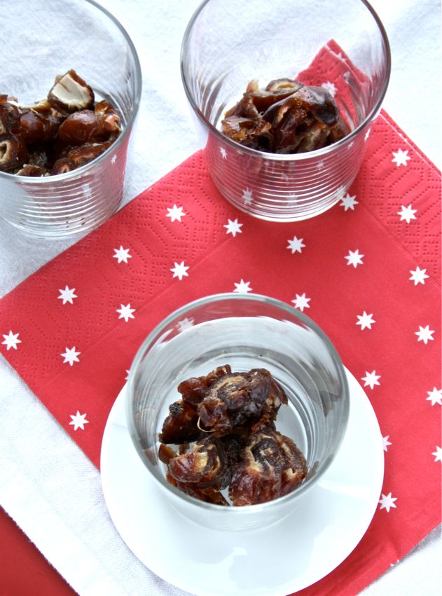• Tumble the chopped dates into 6 verrine glasses or small pots.