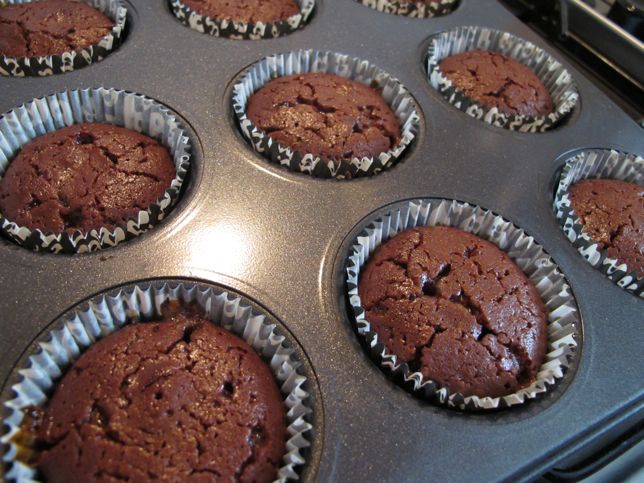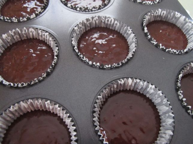 4. Spoon the batter into the paper cases and bake for around 25 minutes. Normally I would say bake until a cocktail stick comes out clean but these bases are more brownie like and sponge so so long as the stick is not really wet after this time you should be ok. Cool in the tin for 10 minutes before lifting out onto a wire rack.