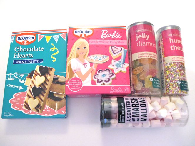 The sprinkles from the Dr Oetker Tea Party range included giant wafer daisies, “mini jazzies” which are like chocolate buttons covered in hundreds and thousands – I expect you remember similar sweets in the pick and mix bags of your youth (at least if you grew up in the 80s – I cannot vouch for their presence more recently) and mini chocolate hearts, moons and stars. You can easily pay £3.00 for a dozen wafer daisies so this kind, currently retailing at £1.09 in UK supermarkets, are good value in comparison. The jazzies were my favourites!