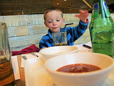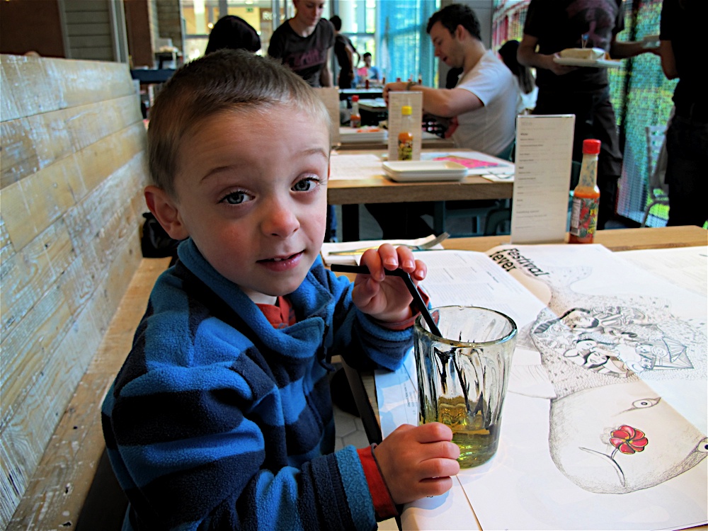Second time around taking Ted to Mexican chain Wahaca at Canary Wharf. Previously we had enticed him from his latest craze, Zing Zillas’ Fruit Squashing Game, with the promise of riding on DLR trains. Imagine the disappointment when instead we took him to Wahaca.