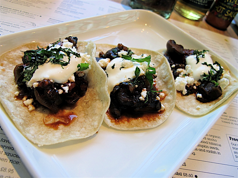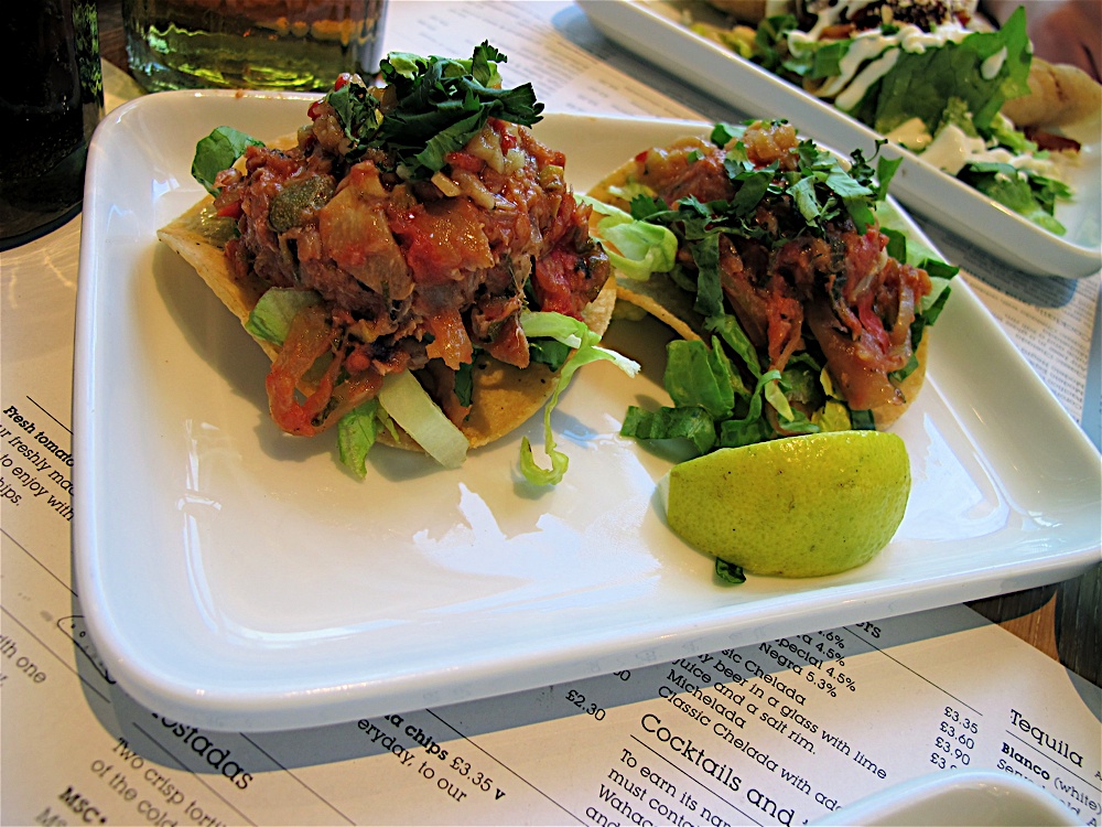 Wahaca makes a refreshing change to the glut of Italian and noodle chains. Their service is prompt, orders are placed via computer and on one visit, Ted’s food arrived before the waitress had finished taking the rest of our order. That’s fast!