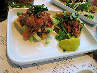 We thoroughly enjoyed the Wahaca selection, it was a good introduction for my husband who had never eaten there before. The menu is mostly made up of tapas sized portions of various quesadillas, tacos and less familiar Mexican specialities such as tostadas (a mini salad on a small tortilla) and taquitos (deep fried filled tortillas with cream).