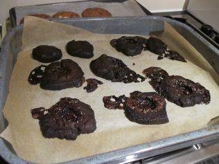 Horrifyingly though, I massacred the stained glass ones. After 12 minutes they looked golden but not quite done. I forgot to set the timer… and then smelt burning sugar during dinner! Hence the blackened mess below.