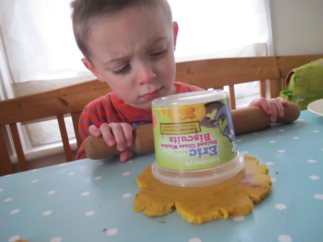 Before teatime a little voice said “Mummy can we make biscuits now” and since they’d only take 10 minutes to pop on baking trays I obliged. The dough is rock hard on opening but the instructions say to microwave on a low setting to soften it.