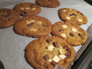 Fortunately, the chocolate chip ones which came out earlier were just right. Similarly to the gingerbread they required less time than stated on the packet.