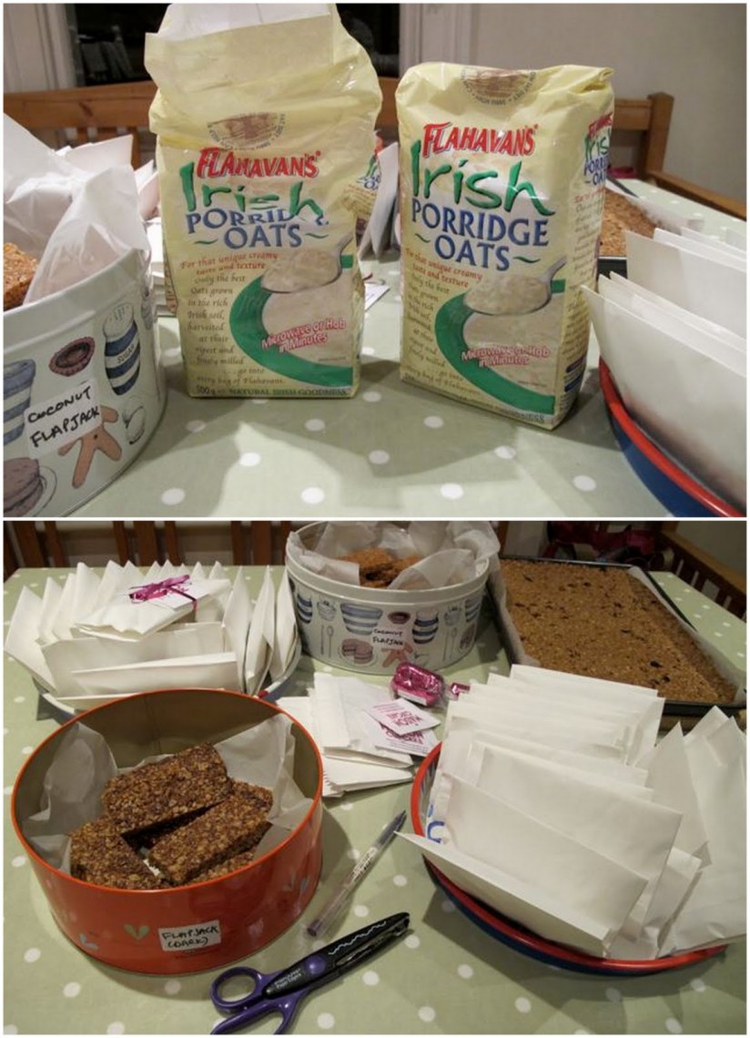 As well has handing out sachets of Flahavan’s 3 minute microwave porridge oats to fellow Cybermummy delegates I also wanted to give people something of my own. Initially I’d toyed with macarons or mini cupcakes but as soon as Flahavans were mentioned, I said FLAPJACKS!