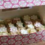Now a lot of mums send in shop bought cake and I can understand this. But I felt it would be a tad embarrassing for the mum with the baking book to buy her own cake. So despite being on a 3 day schedule to produce a dozen different bitesite treats (around 200 pieces in total – some of them shown below) I managed to squeeze in these cheats’ fondant fancies.