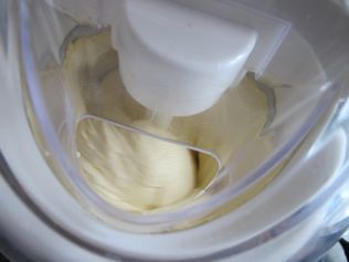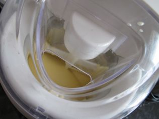 5. When it is cold, churn in an ice cream maker for around 45 minutes.
