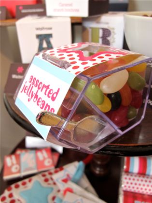 For the children I loved these felt stockings and dinky jelly bean dispenser with miniature metal scoop.