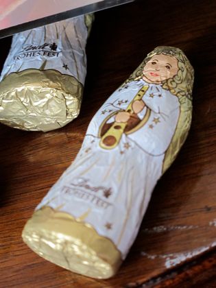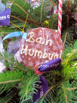 Lots of little tree decorations and stocking fillers ranging from these Bah Humbug chocolate discs to individually boxed Choc on Choc christmas chocolate cupcakes.