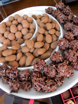 My favourite product of all is here, salted caramel delices, like truffles rolled in cocoa but with a hard shell inside which a liquid salt caramel bursts into your mouth. I have a bit of thing about salt caramel right now (don’t we all) and these really did it for me. Alongside them are almond and cinnamon clusters. Either would make great gifts to take along to a dinner party during the festive period.