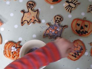[…] Normally I wouldn’t advocate bought tubes of squeezy icing but they worked a treat on these Halloween cookies […]