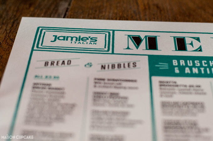 Visits to Jamie’s Italian have evaded me until now for some reason. The branch at Canary Wharf is in the middle of a traffic roundabout slightly out on a limb from the rest of the subterranean shopping area. We pass it in the car on every visit but never walked past the outside as we have no reason to walk around the roundabout. So after this invitation to review I’ve unravelled the minor hurdle of where their front door is and I shall certainly be going again.