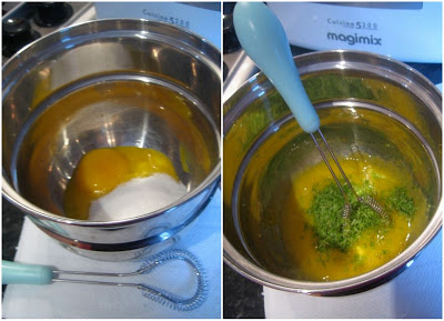 In a large mixing bowl (or stainless steel mixing bowl), mix together the egg yolks, sugar, the Marsala (or espresso/ coffee), vanilla extract and lemon zest. Whisk together until the yolks are fully blended and the mixture looks smooth.