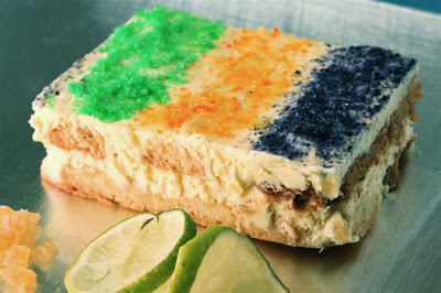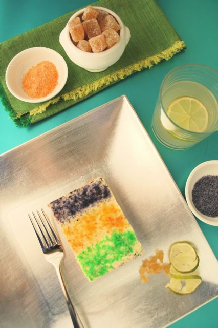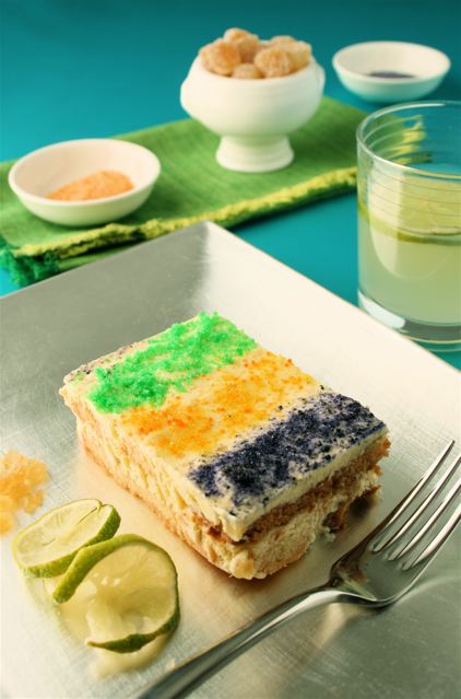 Although I had been daunted by the number of things to do and the necessity to spread creating this dessert over several days, actually all stages went very smoothly and I was very pleased with the results. I put the final result in the freezer for two hours before cutting. The alcohol was not overwhelmingly strong and you could easily make this with just the lime and ginger beer if you wanted an alcohol free version.