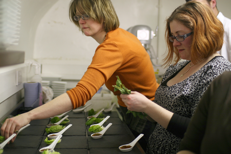 But tonight I find myself folding spring rolls in the back of a professional kitchen, a glimpse of how my working life might have started. I love the practicality, no computer, buried out the back whilst someone else deals with the customers. Disappointingly no chef’s whites either!