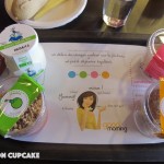 Breakfast is a buffet of continental offerings including pastries, fruit and cereal but the presentation is slicker than usual with foods arranged according to which nutrients they contain. A breakfast “wall” has zones for protein, dairy, fruit etc. In theory you pick an item from each zone to make up a nutritionally balanced breakfast.