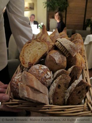 I managed to make the cheese lecture last twice as long by asking lots of questions which seemed to amuse the diners at the next table. The cheeses selected were presented in a fan shape going from mild to stronger with quince, grapes and walnuts.