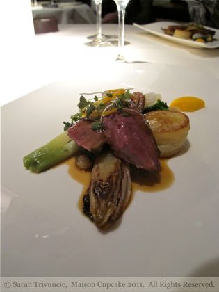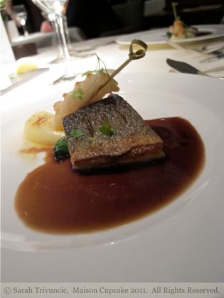 Next was confit of “Landais” duck liver with rhubarb compote and sour dough toast. The flavour of the confit soars after the sea freshness of the first, it’s like a piece of classical music starting to bring in more instruments.