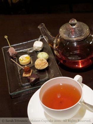 An encore of petit fours joined my blue Darjeeling tea (not blue you’ll note but extremely refreshing to this non tea-drinker). Despite everything I did squeeze in a couple of petit fours. One of them was a miniature choc ice, you don’t expect me to let a miniature choc ice to melt in front of a hot fire surely?