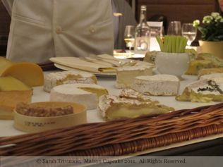 A little break now to learn about cheese. We hadn’t expected to choose the cheese trolley but once I’d seen it wheeled to an adjacent table and partially overhead the enthusiastic waiter describing its contents I was determined that we should get a front row seat at the cheese lecture too. Passing over those amuse bouches earlier on is paying off now!