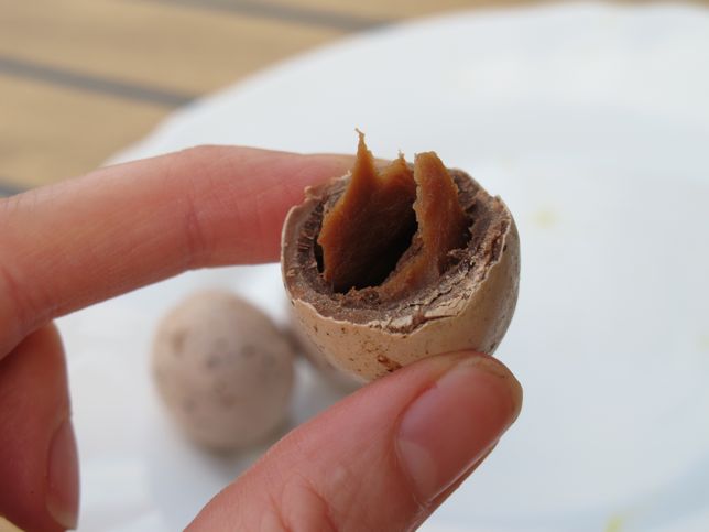 Inside the gull’s egg. Caramel. Chocolate down fingernails too. Which proves I was enjoying myself.