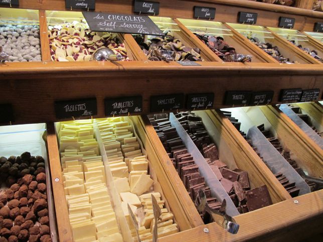 “Les Chocolates Self Service”. I love it when the French adopt English words as their own, like le weekend although it too me a while to realise that om-bugger was not something rude.