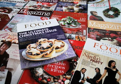 To my husband’s horror, I seem to have inherited the magazine hoarding gene. Above you can see just part of my collection of Sainsbury’s, Waitrose Food Illustrated and Delicious Christmas magazines together with a couple of Delia Smith Christmas Specials. I omitted from this photo two Martha Stewart Holiday Baking magazines which I picked up in Selfridges years ago… they were left downstairs when I took the photo. My favourite cover is the Waitrose one with Nigella Lawson in her party frock. As a food blogger I am putting these magazines to good use: I have arranged them seasonally so I can compare ideas for different times of the year easily. This year I have bought three more Christmas issues bringing the number of December/January issues to around twenty! I have over one hundred altogether.