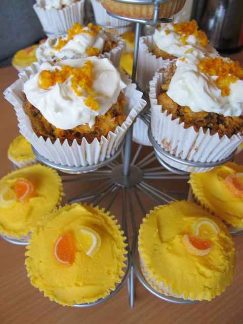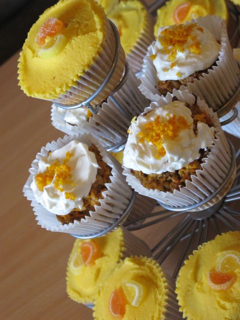 Twenty five minutes later I was converted.  Now, without the topping, they’re not necessarily the greatest looking muffin around, no puffed up round tops, a bit rock cake looking – but let me tell you this, these carrot cake muffins taste marvellous.  Eaten warm straight from the oven, they were heavenly. Cooled, they are just as good, lightly spicy, soft and not at all dry with the cream cheese frosting adding a wonderful moistness.  On the day of the party, I chose one over the cupcakes. I will definitely make them again and experiment with further recipes from the book.