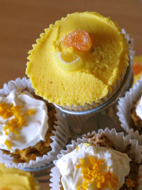 6. When the muffins are cool, spoon over the cream cheese frosting and decorate with a sprinkling of the remaining orange zest.