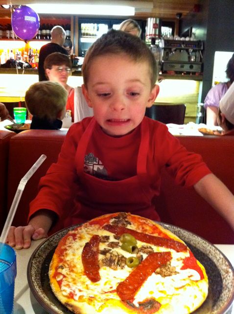 And here it is! I was astounded that someone so tiny could manage to polish off over 50% of this pizza.