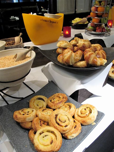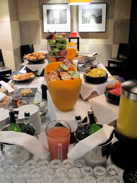 Fortunately the soundproofing (or was it because we were at the back on the fourth floor?) was excellent and after a quiet, comfortable night’s sleep, we strolled back to the same room for breakfast eight hours later where apart from an abandoned glass of white wine in the lift, there was no sign of the drinking and dancing frenzy we’d seen the night before.