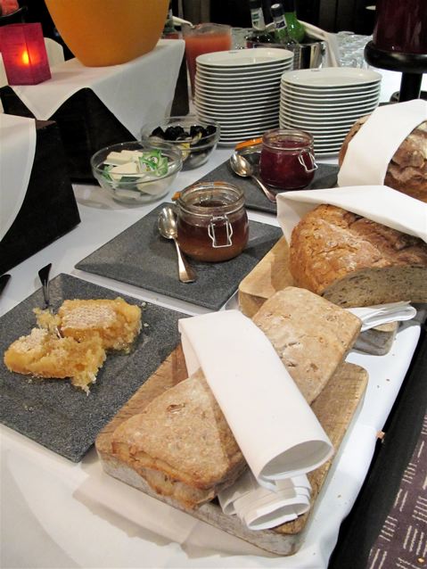 I’ve seen plenty of miserable breakfast buffets so it was a joy to behold a table laid with a wide range of quality breakfast foods at Malmaison. There were bountiful bowls of fruit, enormous loaves of artisan bread to slice from, real honeycomb, pastries, terracotta jars of continental yoghurts, fruit, cereals.