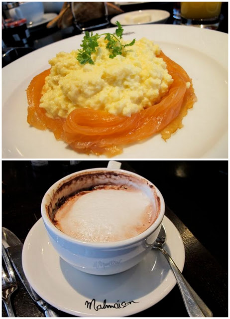 Smoked Salmon and Scrambled Eggs, Hot Chocolate