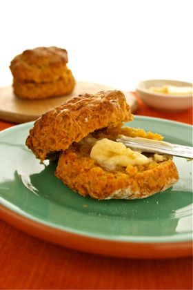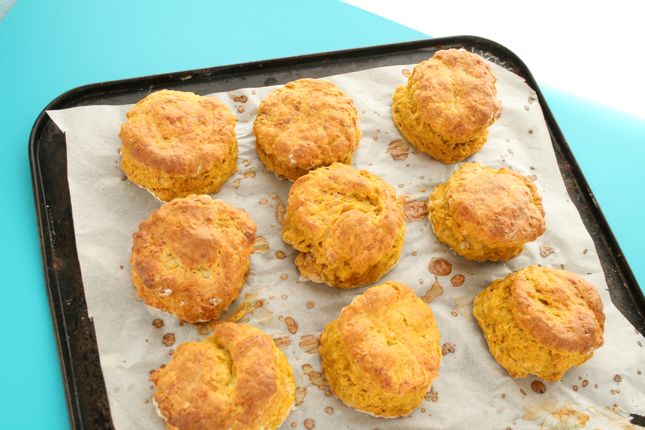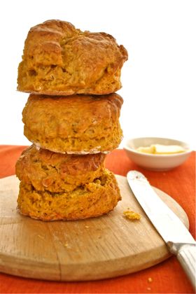 These pumpkin scones are featured in Nigella Lawson’s “Kitchen: Recipes from the heart of the home” and a version of them appears on Nigella.com here.