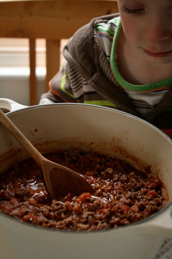 As a teenager given free range in my father’s glorious (sarcasm alert) kitchen I regularly concocted a bolognaise sauce of some description into which I would throw pretty much anything. Unable to cook much else but desperate to avoid the threatened combination of watercress and canned sardine in tomato sauce that were the frequent alternative, I’d pretend to be a grown up in Safeway and come back with bags of mince, onions and five varieties of tinned vegetable. Baked beans were usually included. And grated cheese. Fortunately my father was a great deal more appreciative than Nigel’s eternally grumpy dad as portrayed by Ken Stott.