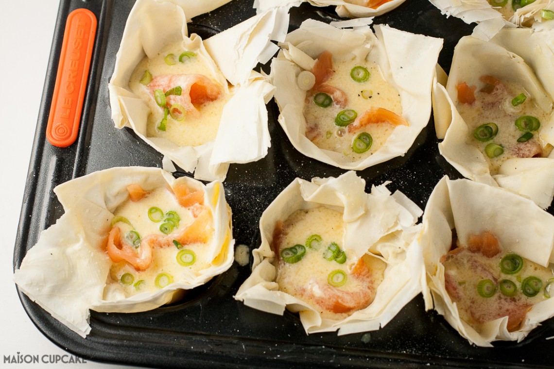 The full printable recipe is shown below but here are some step by step pictures to show you the process of making filo quiches.