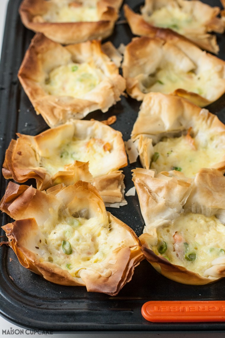 Mini quiches with filo pastry are quick and easy to make and the ideal solution if you a) prefer a lighter pastry and b) don’t want to make pastry in the first place.